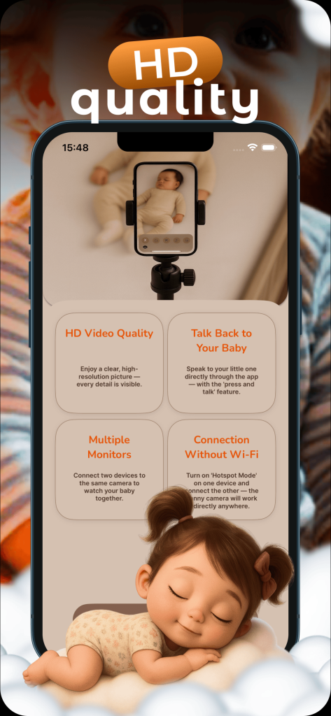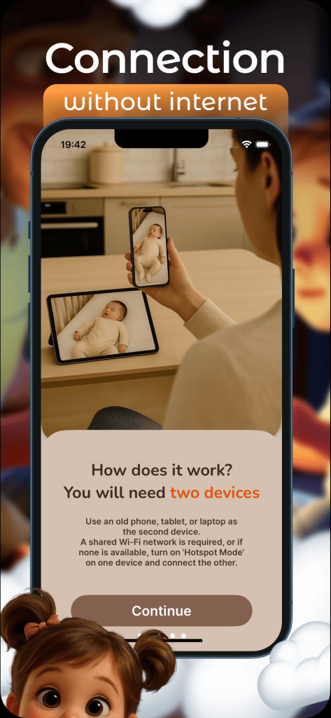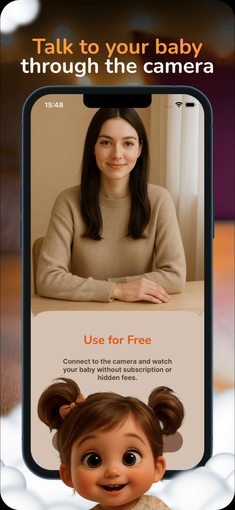 Simply connect two devices and watch your little one from anywhere — safely, clearly, and in real time.